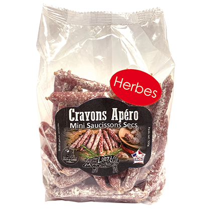 Les saucissons secs LES DELICES DE CLOBERT sont fabriqués sur le site de Montreuil Bellay (49). L'embossage de nos saucissons dans un boyau naturel, réalisé exclusivement à la main, créé des saucissons à l'aspect irrégulier pour un rendu très artisanal. La viande est 100% Française. L'affinage de cinq semaines confère aux produits une saveur inimitable. La gamme Les Délices de Clobert est dédiée à la grande distribution, nos produits sont conditionnés en sachet. Nous fabriquons également de grosses pièces à destination des rayons traditionnels en magasin. Nous proposons d'ailleurs les supports à brasse ou encore les arbres à saucissons pour une présentation d'exception.